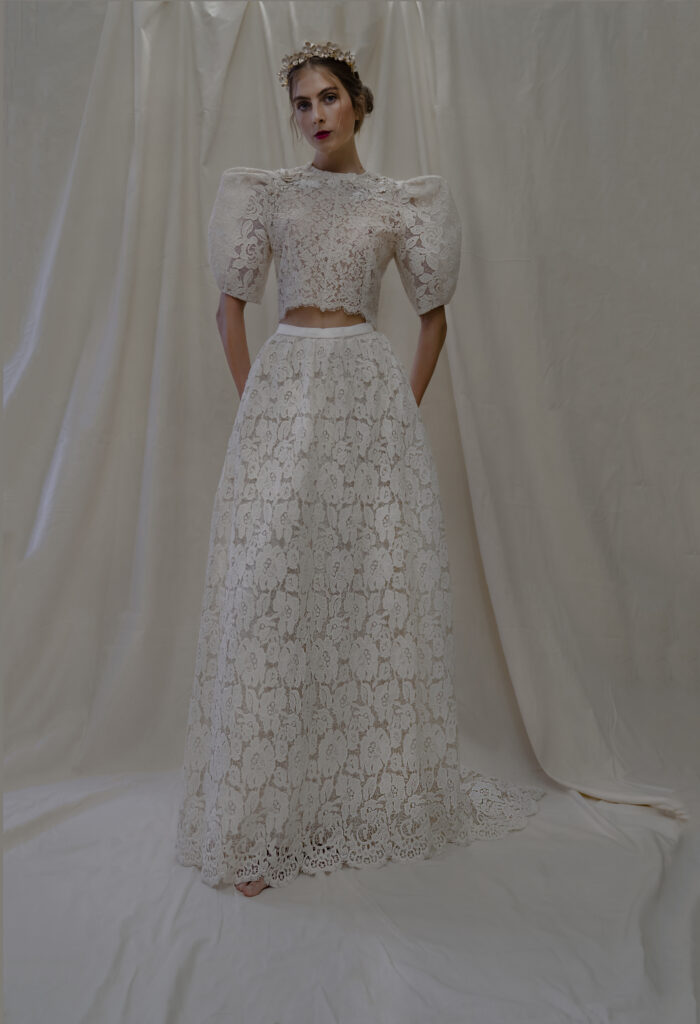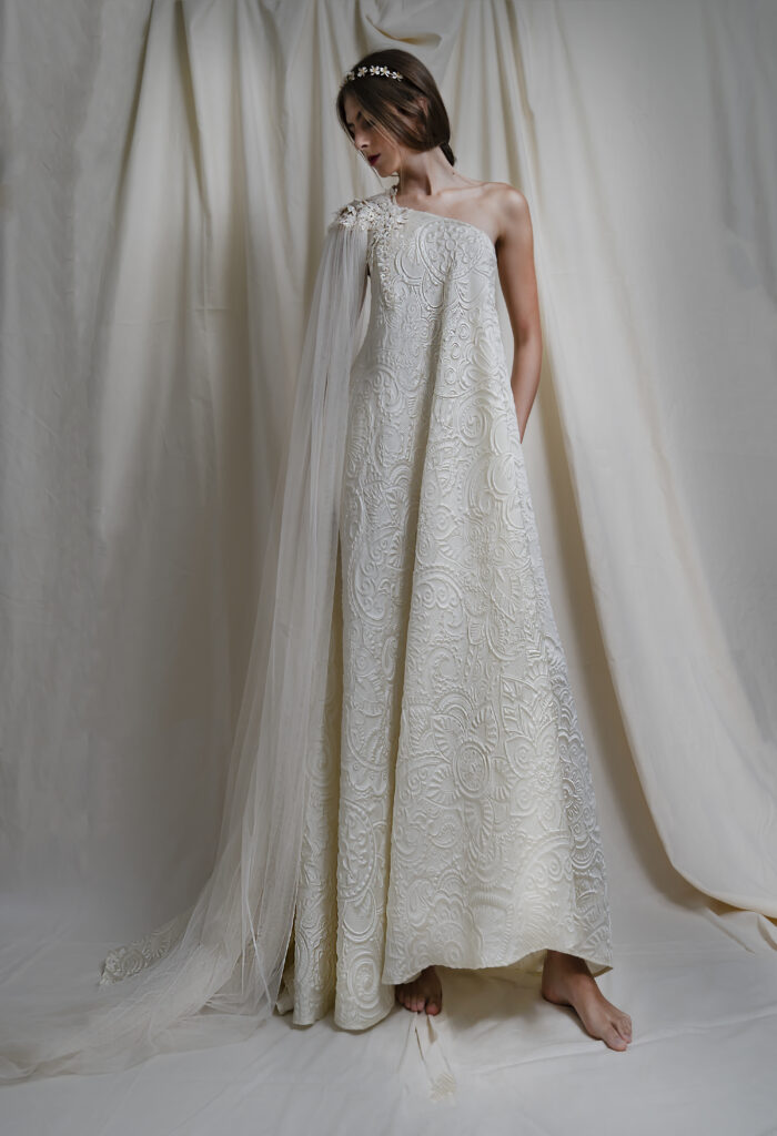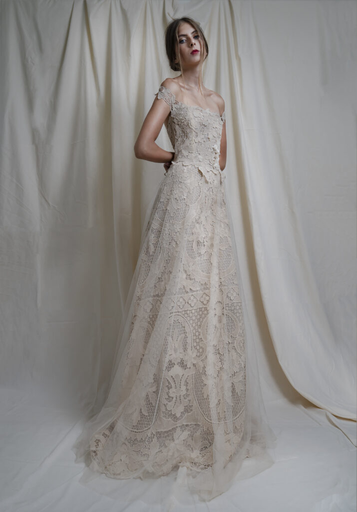 Da sempre Elisabetta, ama realizzare i suo abiti da sposa in bianco caldo o bianco polveroso in perfetto color Pantone CLOUD DANCER.