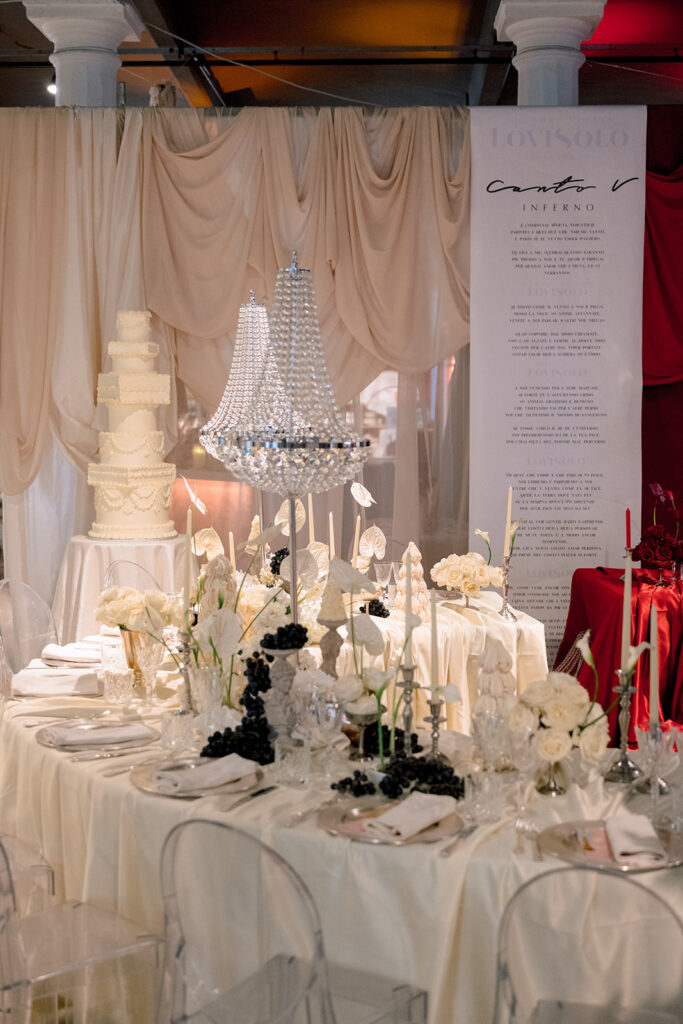 Per il 2026 la manifestazione ha scelto un immaginario fortemente simbolico: la Divina Commedia. Inferno, Purgatorio e Paradiso sono diventate le tappe di un racconto contemporaneo che ha interpretato, in chiave creativa, il percorso professionale e progettuale che attraversa l’industria del matrimonio. Un concept narrativo che ha accompagnato visitatori, professionisti e futuri sposi in un’esperienza fatta di contenuti, incontri e suggestioni estetiche.